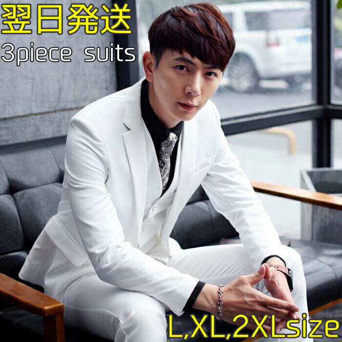 《翌日発送》【送料無料】スリムスーツ セットアップ メンズ カジュアルスーツ メンズスーツ フォーマルスーツ 紳士服 ビジネススーツ リクルートスーツ 3ピース スリーピース ブラック ホワイト 卒業式 面接 入学式 結婚式 二次会 2次会 白スーツ