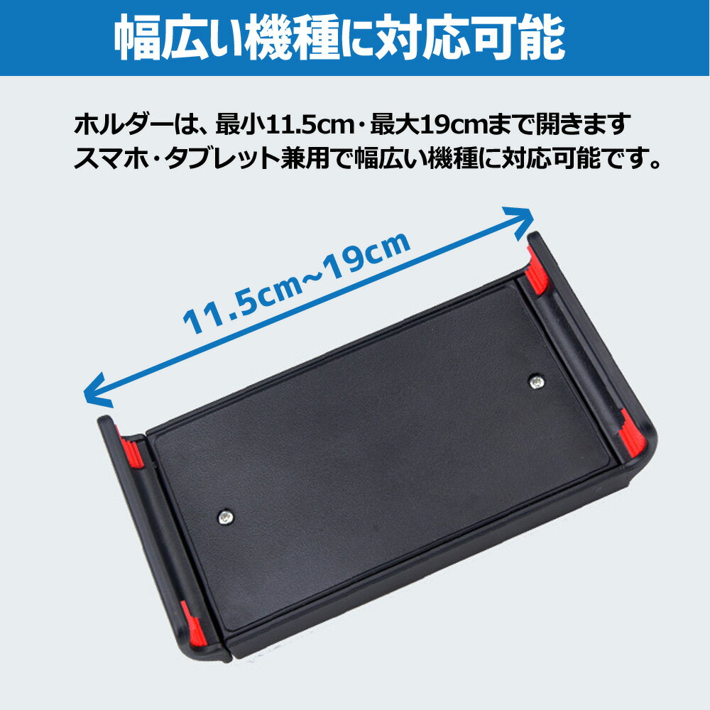 ホルダーは最小11.5cm〜最長19cmまで開き、幅広い機種に対応します。