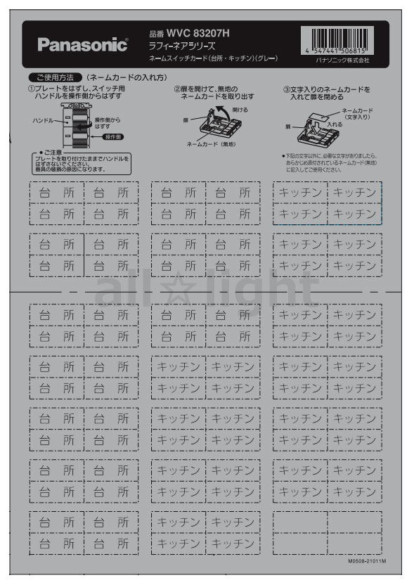 パナソニック フルカラー ネームスイッチカード 住宅用 10シート入 台所 WV830107