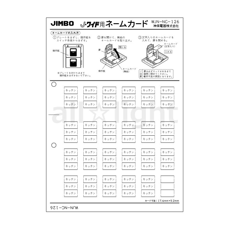 ☆神保電器 J・WIDEシリーズ ネームカード マークスイッチ用 表示:キッチン WJNNC126