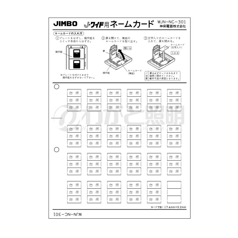 ☆神保電器 J・WIDEシリーズ ネームカード マークスイッチ用 表示:台所 WJNNC301